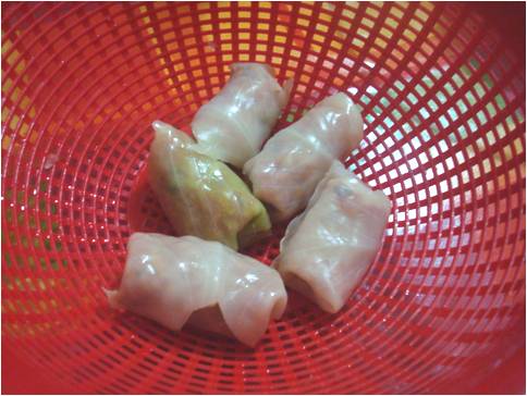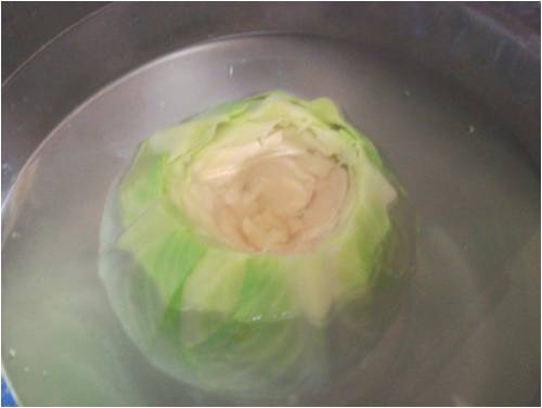 ..ora mettete la verza a raffreddare, poi staccate le singole foglie