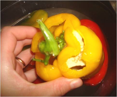7. Lavate e tagliate la parte superiore dei peperoni, eliminate