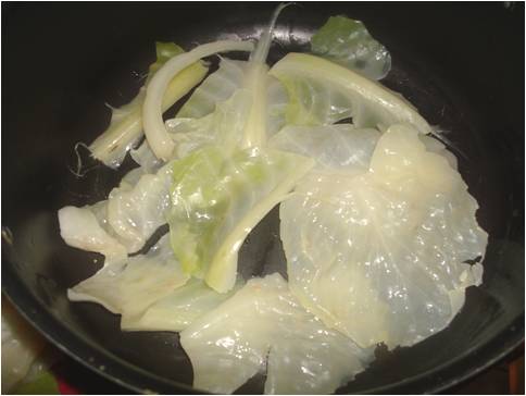 ..quando l'acqua bolle, versatela sopra la verza e lasciatela così