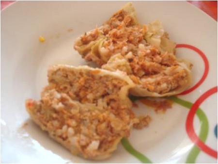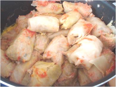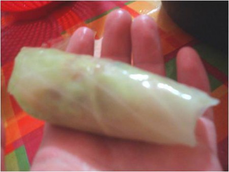 e girarle su se stesse sino al termine della foglia di verza..