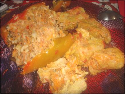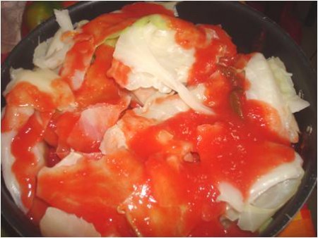 per i peperoni, mettete sul fondo e sopra gli avanzi della verza..