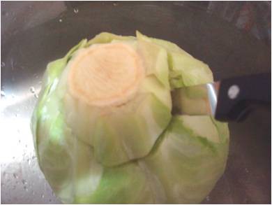 5. Prendete la verza e tagliate la parte inferiore a forma di cono