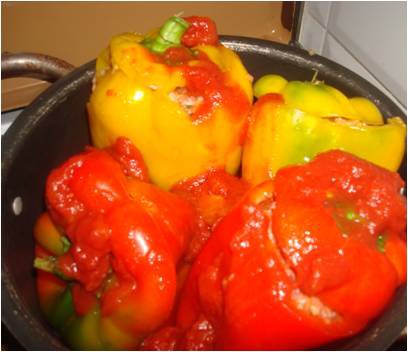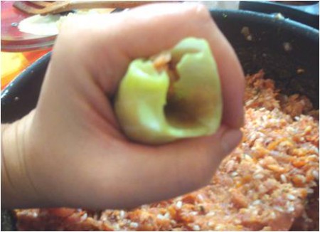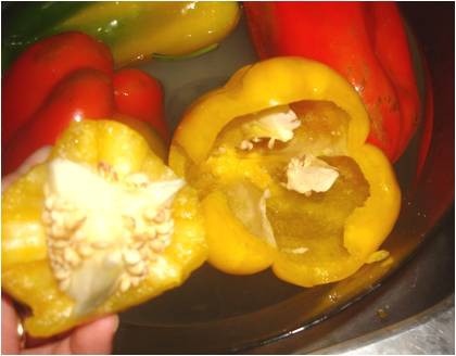 ..riempite i 4 peperoni con l'impasto di carne..
