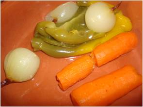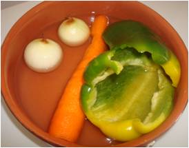 ..poi unite le cipolle, la carota, il peperone, l'alloro e il ginepro