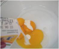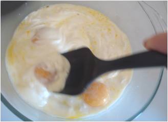 5. In una ciottola, unite la panna alle uova e amalgamate bene.