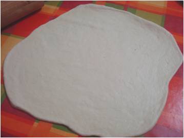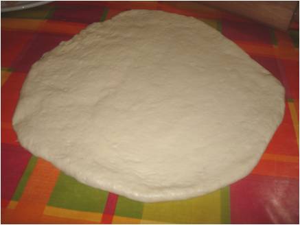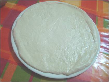 dandoli una forma tonda di grandezza quanto il piatto per pizza..