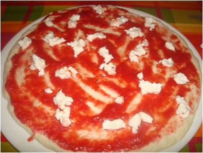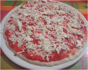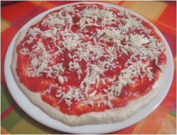 ..la mozzarella grattugiata su ambedue le pizze..