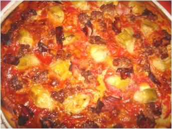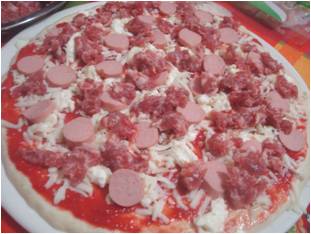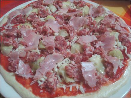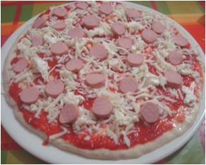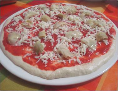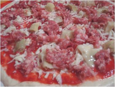 ..sulla pizza con lo stracchino unite il wurstel e sull'altra i carciofi..
