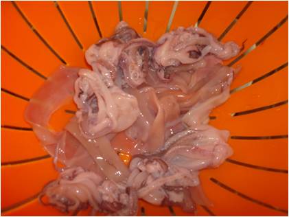 2. Lavate bene i calamari puliti dalla pelle e ricavatene degli