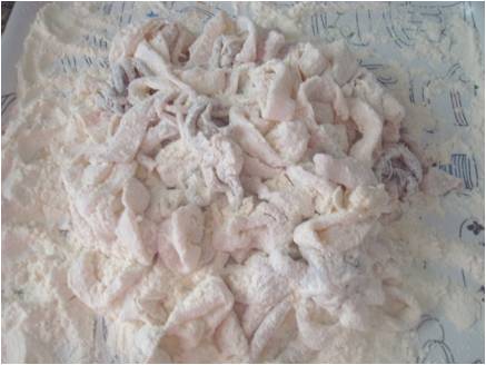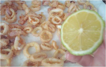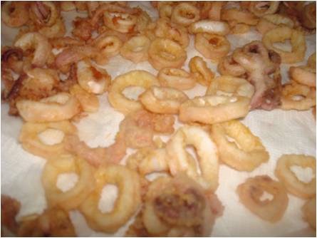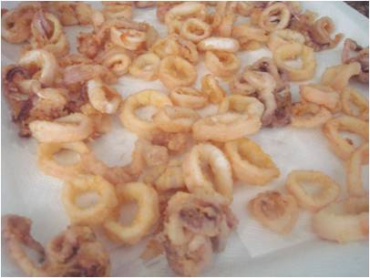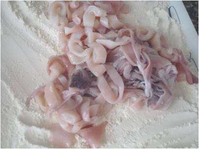 ..unite gli anelli, le strisce e le teste dei calamari e ripassateli
