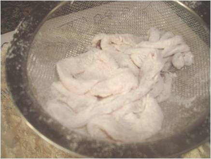 ..dopodiché, passateli in un colino, in modo che perdano la farina