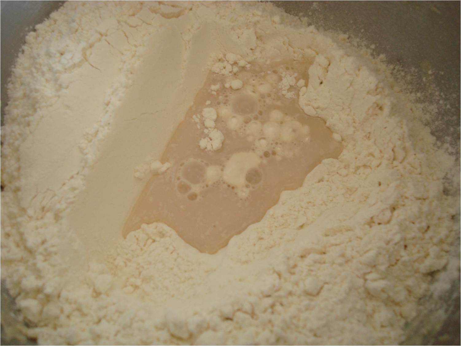 1. Mettete nel contenitore dell'impastatrice la farina.