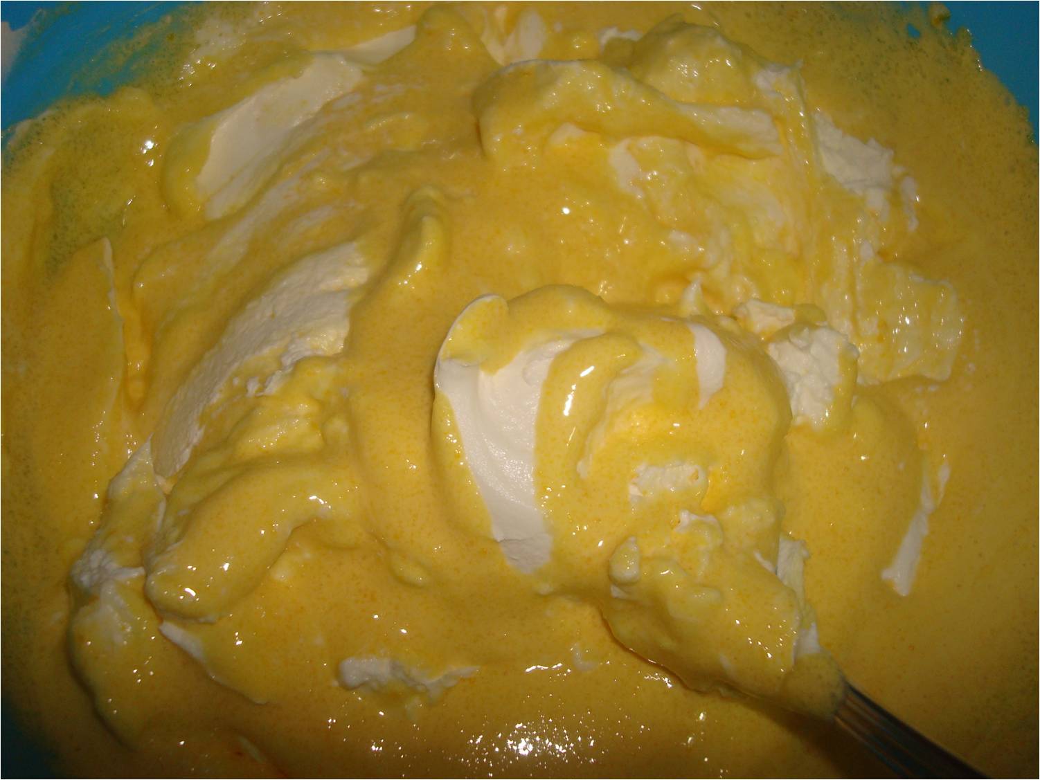 6. Con un cucchiaio amalgamate bene il composto di panna