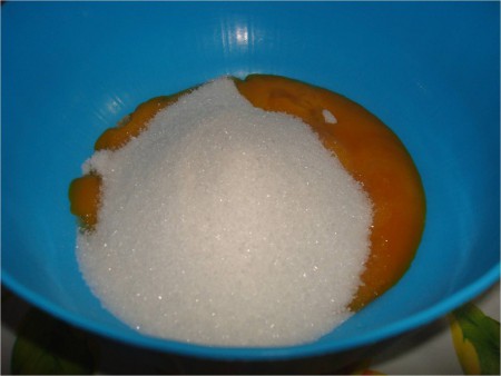 2. Ora metà dello zucchero va messo nell'albume e l'altra metà