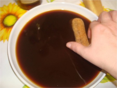 ..ora inzuppate i savoiardi, uno alla volta, nel caffè e