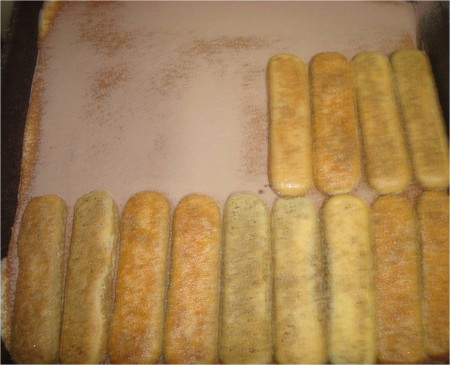 ..aggiungete uno strato uniforme di crema su tutti i savoiardi..