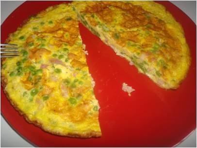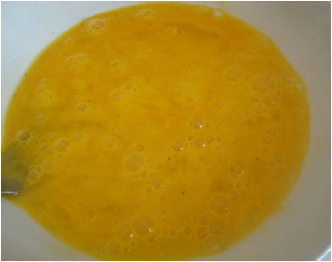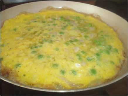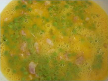 ..sbattete le uova con l'aiuto di una forchetta e unite i piselli